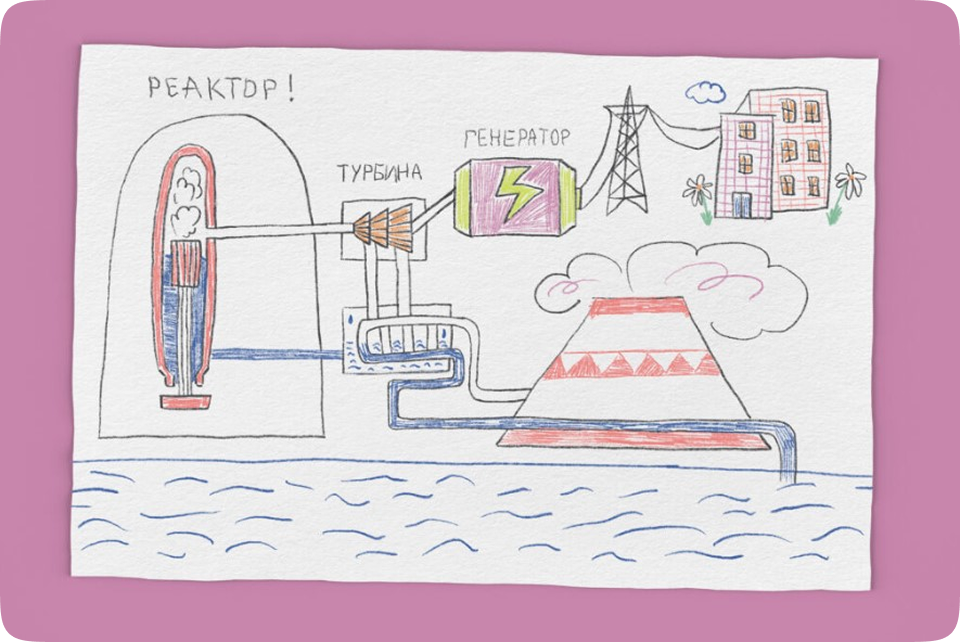 Инструкции — например, как работает атомная станция. С помощью редакции «Рыба» создали статью и иллюстрацию: «Атомная станция — это большой чайник, который кипятит воду и крутит турбину». Такой материал можно распечатать и показать ребенку.