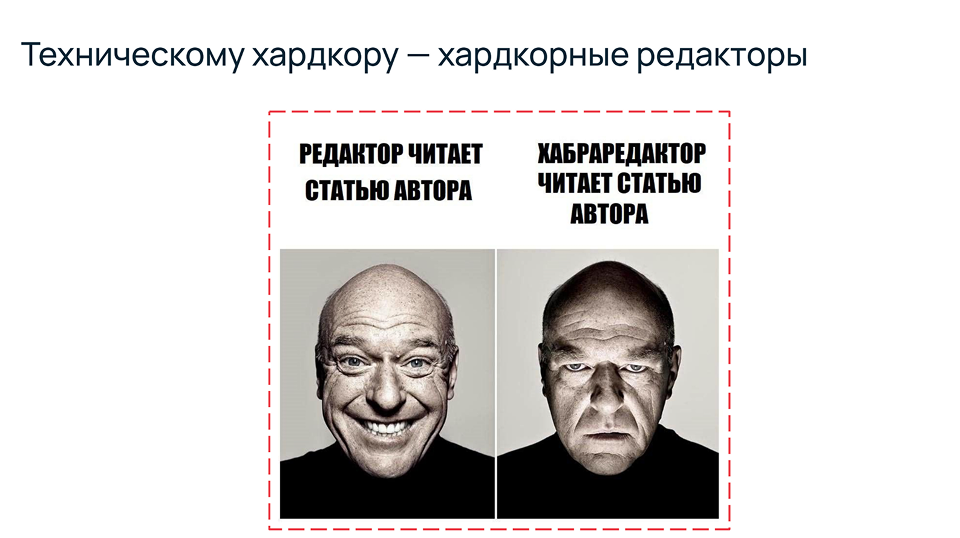Кто-то скажет, что слишком высокие требования, но это стоит того. Если мы берем и работаем именно с такими техническими редакторами, которые соответствуют этим требованиям, то мы в любом случае получаем авторов, которые хотят писать, которые уважают своих редакторов. У них есть мотивация продолжать это делать. И, конечно, логично, что тогда блог работает успешно. А еще такие гармоничные пары работают быстрее и эффективнее.