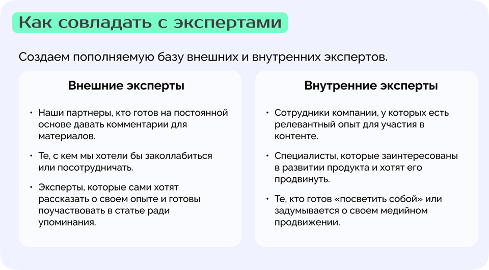 Также у нас есть эксперты, которые не из нашей компании, но они всегда рады писать для нас какие-то статьи. У нас с ними два варианта сотрудничества: