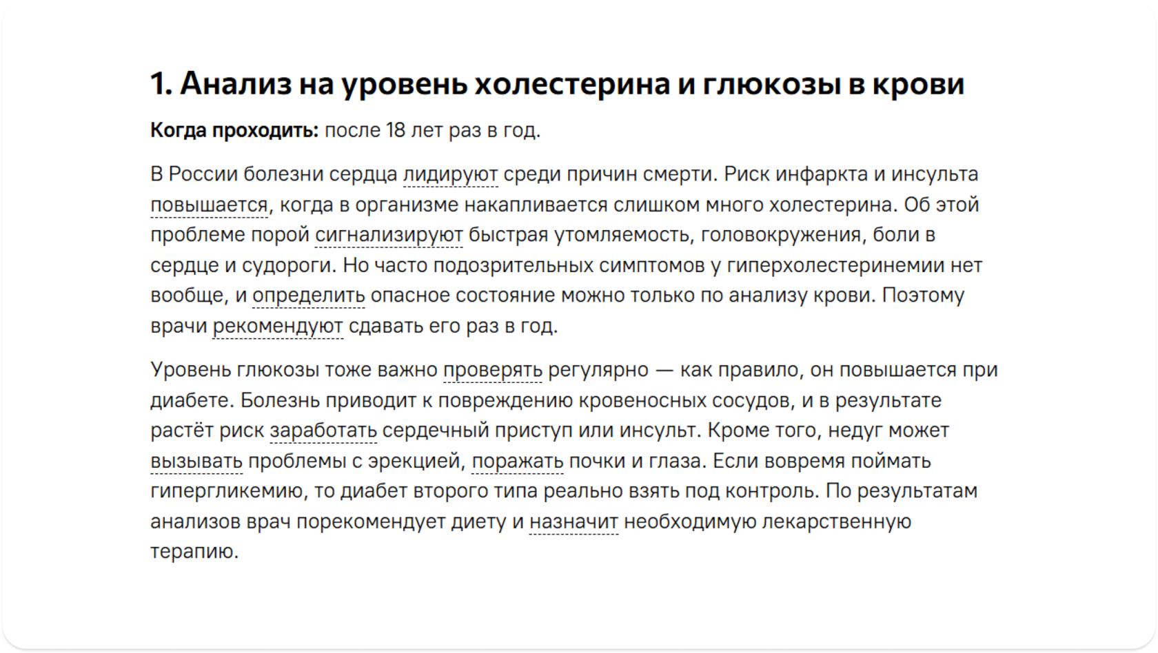 - Не всегда полагайтесь на врачей, с ними будет сложнее найти общий язык. Во-первых, доктора мыслят профессиональными терминами и клиническими протоколами, что естественно для их работы. Но из-за этого страдает качество контента: тексты от врачей получаются сложными и перегруженными для широкой аудитории. Во-вторых, график врача привязан к приему пациентов, поэтому он может не успевать оперативно вносить правки, согласовывать материалы или соблюдать дедлайны — это увеличивает нагрузку на редакцию.