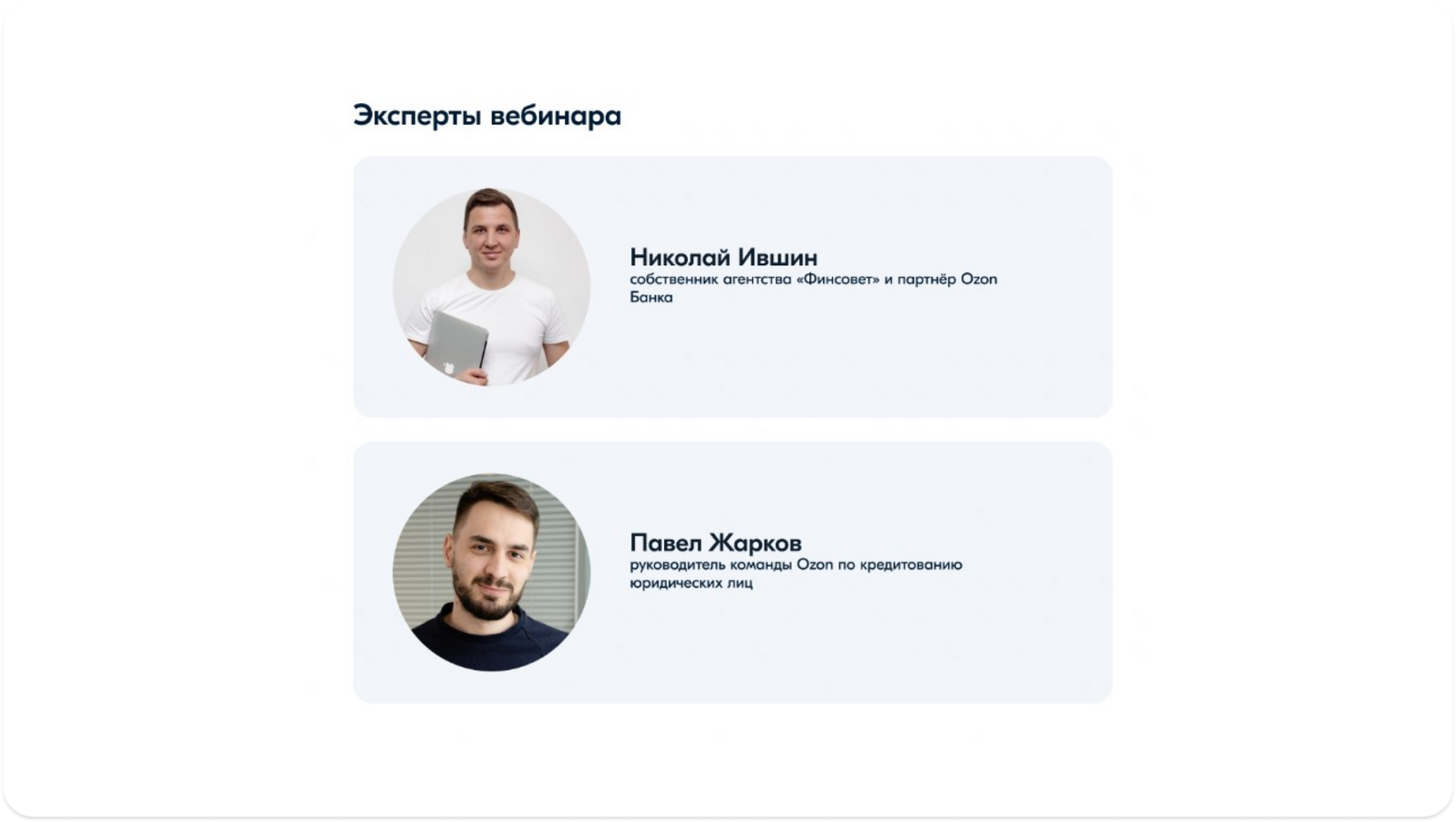 Готовим материал с несколькими экспертами. Когда проводим вебинары, дополнительно приглашаем внутреннего эксперта. Если у внешнего случится форс-мажор, сотрудник Ozon всё равно ответит на вопросы аудитории.