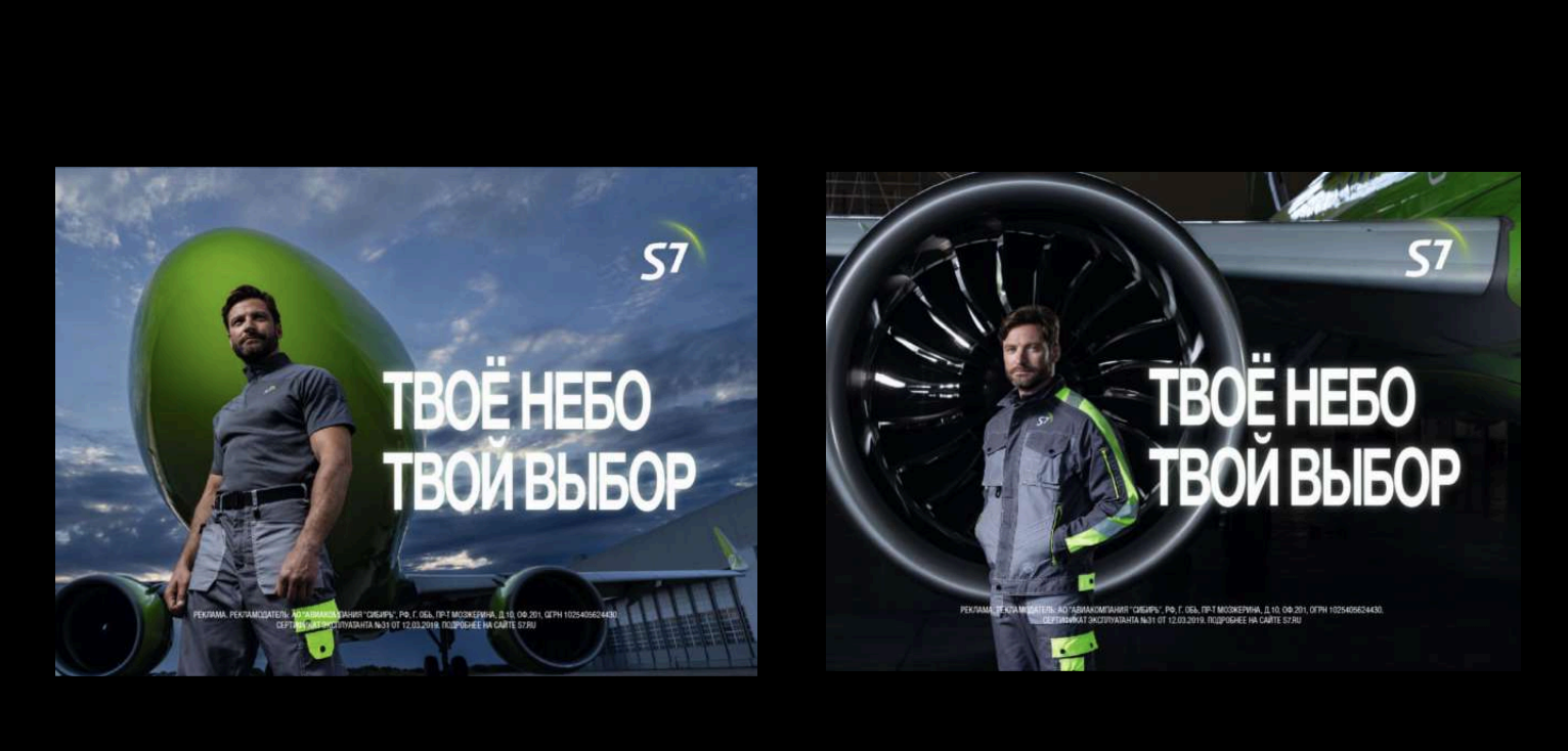 Также мы обновили логотип S7. Компания намеренно отказалась от ассоциаций с голубым небом, потому что многие работают именно с ним, и никак не выделяются. Мы сделали ставку на рассветное и закатное небо.